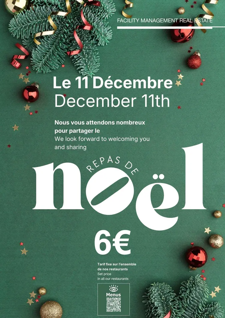 Nous avons le plaisir de vous convier au Repas de Noël organisé par le Facility Management Real Estate et les prestataires Elior et Sodexo.